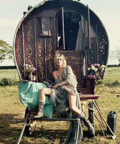 A modelo Kate Moss teve de viver durante dois dias com os ciganos de Cornwall, em Inglaterra, para o ensaio de moda para a revista americana «V Magazine», que chega às bancas na próxima semana.